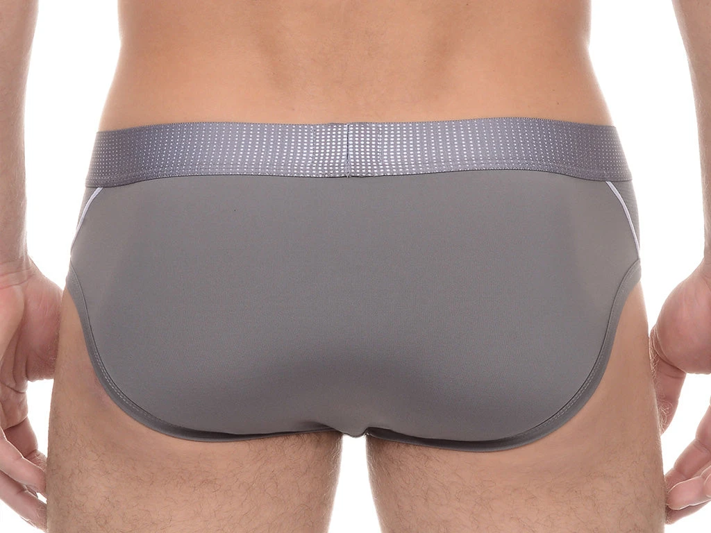 A Brief with a supportive Original Contour Pouch, low rise on the hips, and the benefit of performance wicking, Dual Printed Microfiber waistband, Micro-perforated mesh insets at sides