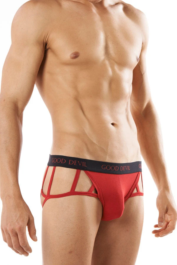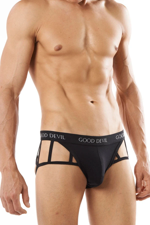 Slip into sheer luxury with the Good Devil Pleasure Brief. Falling true to its name, the underwear looks and feels exotic on the masculinity. Featuring a small solid pouch that holds the manhood well, the back has solid cum sheer fabric whereas; the sides are left bare.