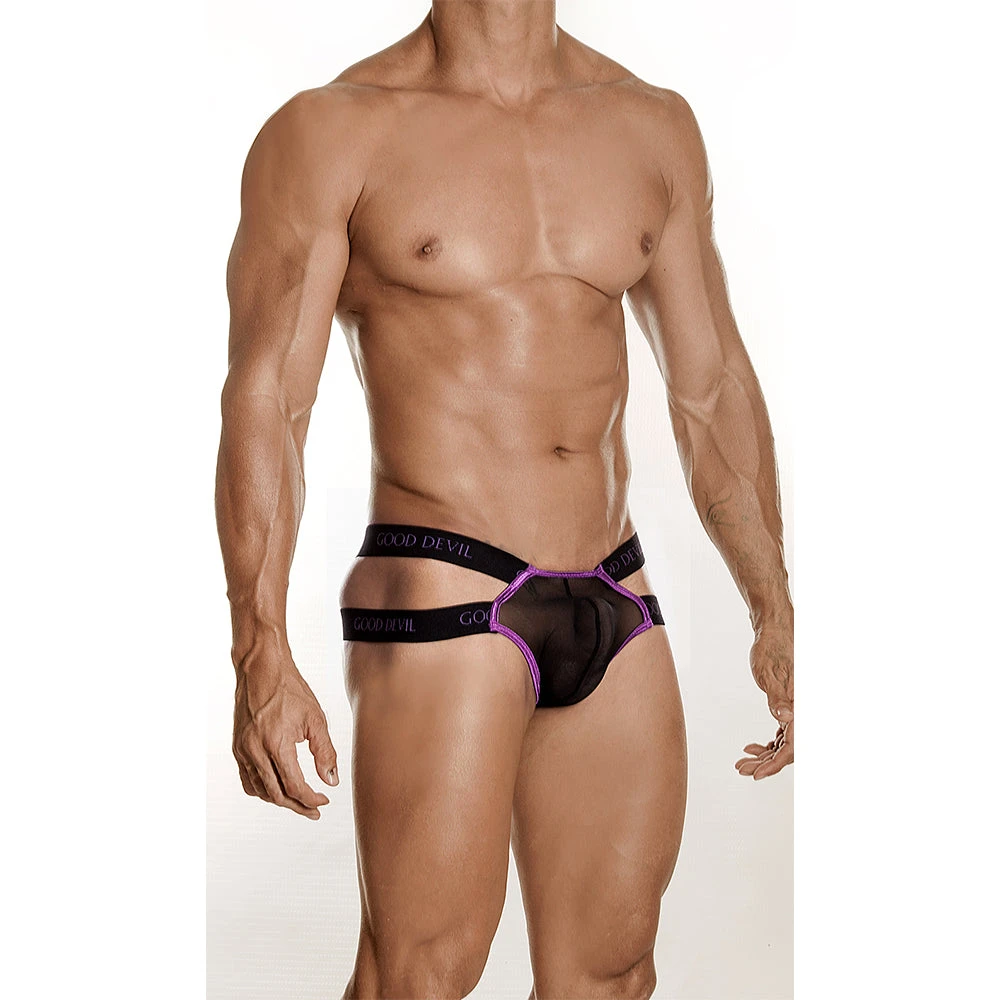 The Good Devil Bound-For-You Thong is a combination of sexy exposure and functional support. Featuring a pouch that covers (not literally) the manhood, the dual elastic straps form the waistband and provide the desired support to the male anatomy. The back has a broad fabric that stays on the top to adjoin the straps and finally diminishes between the butts.