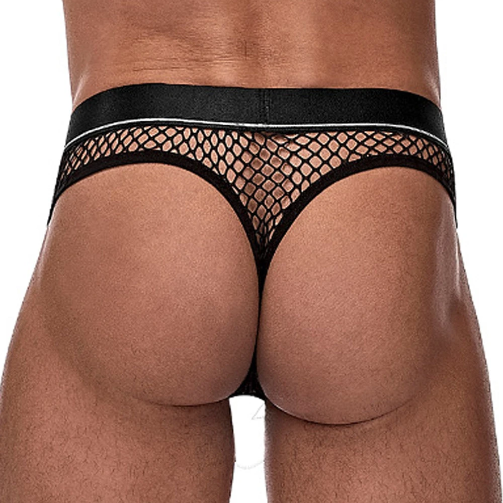 From the Cock Pit Net collection by Male Power, this style includes: A Cock Ring Thong featuring a detachable snap off pouch revealing a plush elastic C-ring, classic thong back, plush elastic trim and a satin finished branded waistband. 95% Polyester 5% Spandex