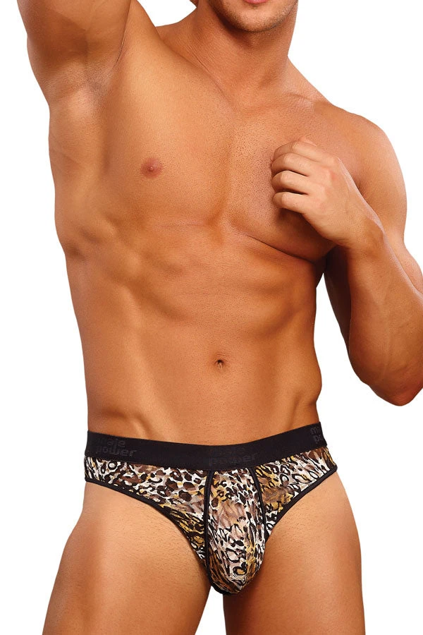 Male Power 436-174 Leopard Lace Micro Thong Black And Brown
