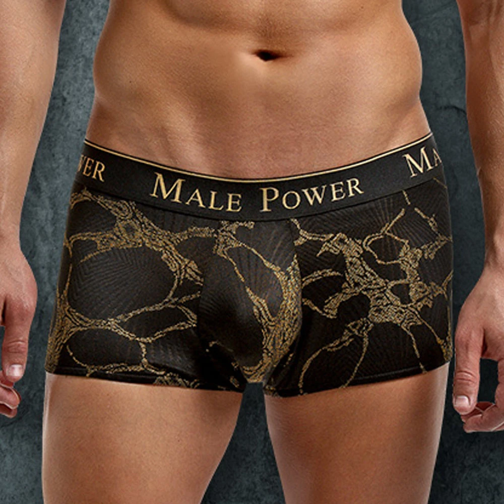 The Male Power Mini Shorts feature a trendy print throughout the shorts. The fit is comforting and the pouch stands out in terms of enhancement.