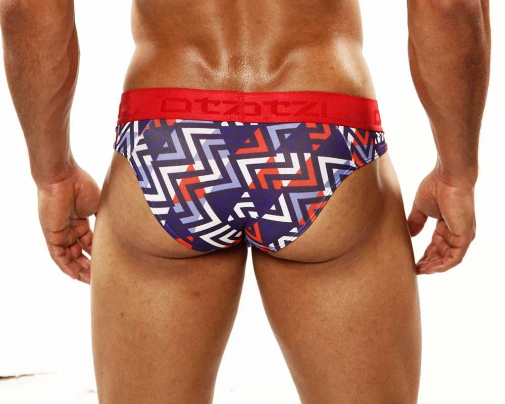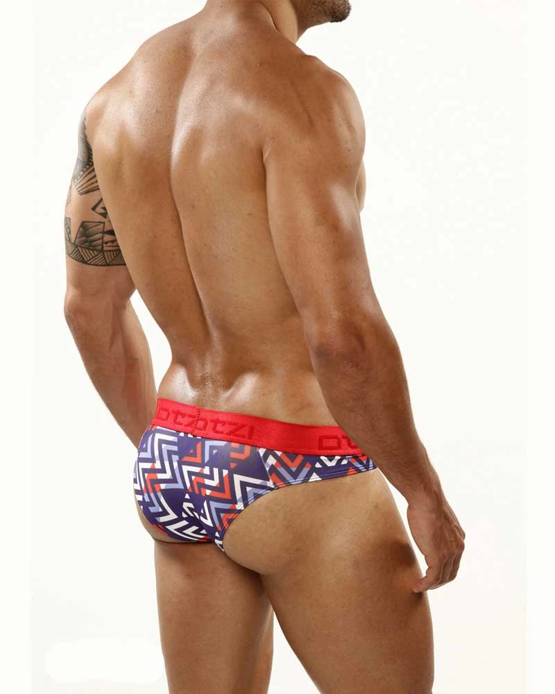 You won’t be able to take your eyes off the zig-zag patterns of the Otzi. The enlongated pouch adds breathability to the manhood. The fabric covers the front and the back completely.