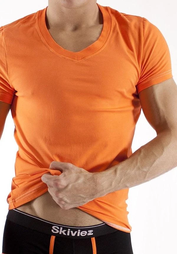 Our own v-neck that isn’t too deep that you’re showing off your man cleavage, but just enough to give you a sexy look. Made from a soft blend of cotton and spandex that give it great fit. Perfect to wear during the summer or as an undershirt. Available in 10 different colors!
