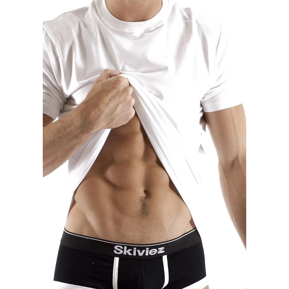 This crew neck is made from a soft and stretchy blend of cotton and spandex to give it great fit and comfort. Perfect to wear as is or as an undershirt. Available in various different colors.
